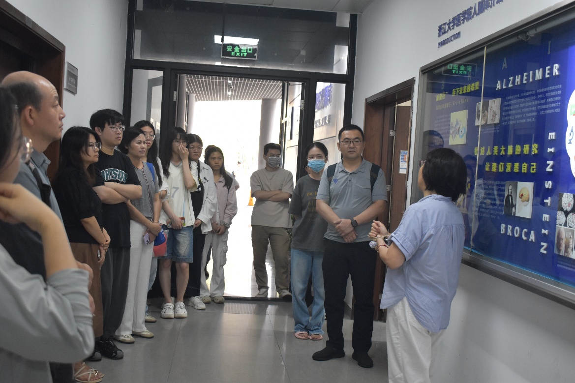 为深入学习贯彻国家关于科技创新和健康中国建设的重要战略部署,提升党员的科学素养与使命担当,9月24日下午,脑院教工党支部和基础医学系解剖与组织胚胎学系党支部开展了以“走进国家脑库,探秘生命中枢”为主题的党日活动,前往国家健康和疾病人脑组织资源库(简称脑库)进行参观学习。活动由教工支部书记王晓东主持,脑库常务副主任包爱民教授为党员们进行了丰富生动的现场分享与讲解。
